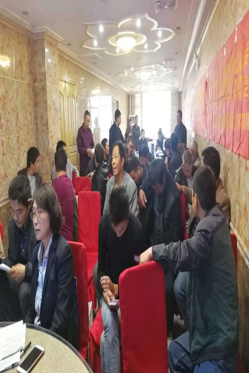 中国母猪大讲堂临泉县姜寨乡产品推广会现场养猪户踊跃订货